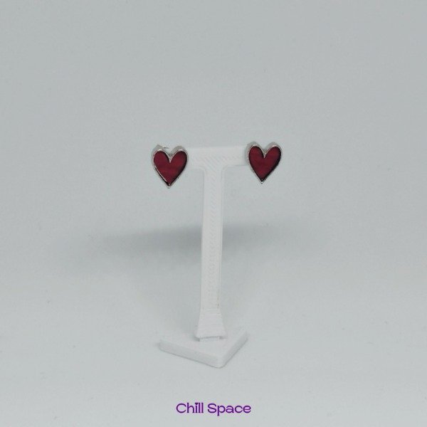 Aros Acero quirúrgico plateado con corazon Resina