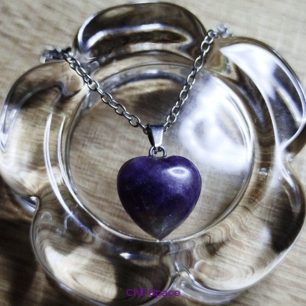 Cadena de acero quirúrgico con dije de piedra natural de amatista.