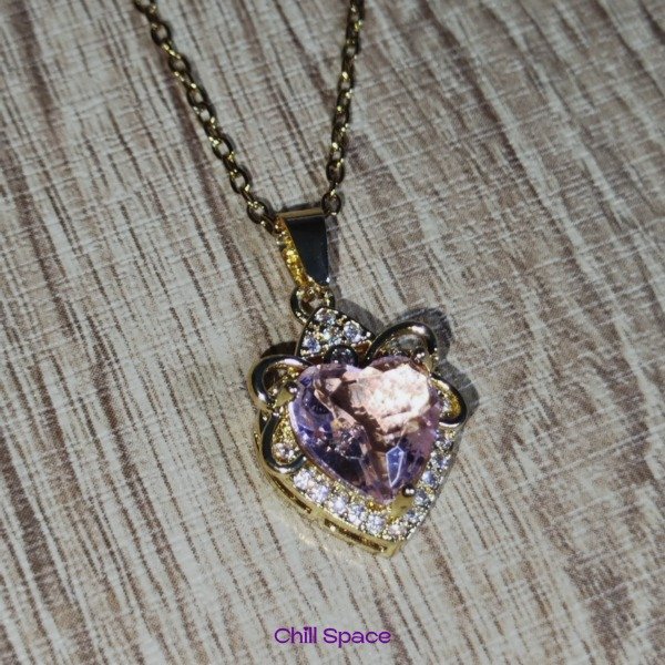 Cadena de acero quirúrgico dorado con un delicado corazón con strass y una delicada piedra color rosita