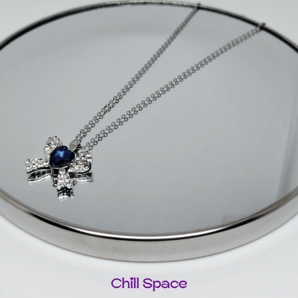 Cadena de acero quirúrgico con dije de Lazo y strass azul en forma de corazón, un diseño original.