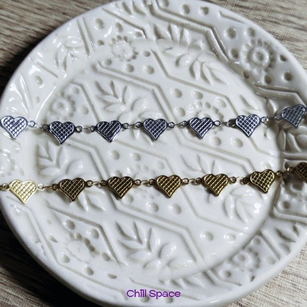 Pulsera de acero quirúrgico de corazones. Tiene una cadena extensiva de 5cm